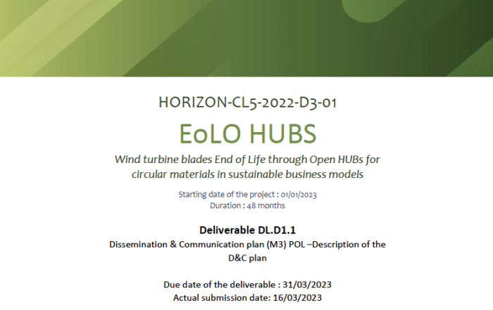 EoLO-HUBs is the acronym for “Wind turbine blades End of Life through Open HUBs for circular materials in sustainable business models”, our project has the ambition to recover glass and carbon fibre from wind turbine [...]